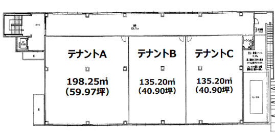 | 面積 | ➀テナントA:198.25㎡(59.97坪) |