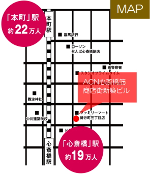 心斎橋駅より徒歩約3分 ACN心斎橋筋商店街新築ビル(仮称)