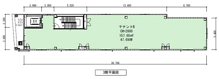 | 面積 | ➀テナントA:2階/約157.48㎡(約48坪) |